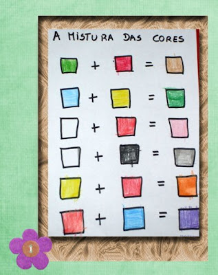 Para finalizar o tema da mistura das cores, fizemos um trabalho com todas as misturas que aprendemos.
